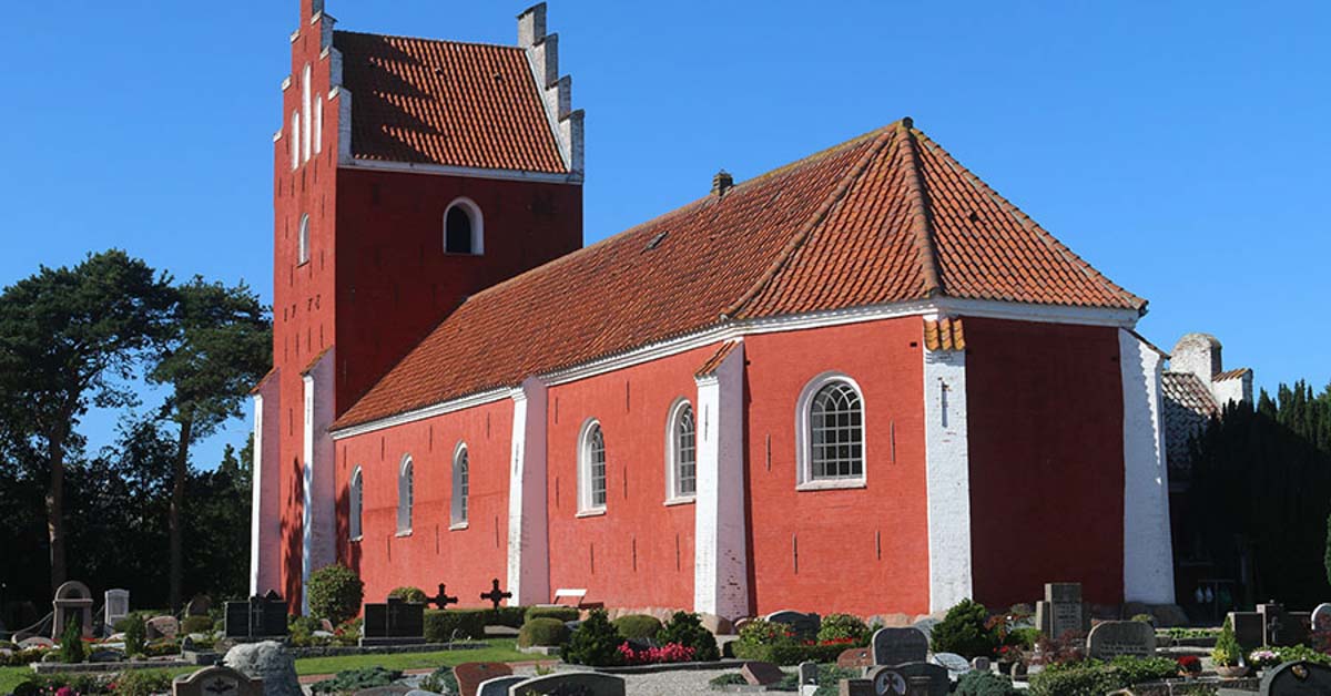 Altertavlen er fra 1450 og vidner om, at den gang var Danmark katolsk. Forneden ses de 12 apostle og foroven i midten Marias Himmelkroning. Til begge sider ses en række helgener – de såkaldte Fjortenhjælpere. Det var dem, som man bad til, når man ønskede beskyttelse mod noget. Hver helgen havde sit eget område at dække – f. eks bad man til Dorothea (øverste række til venstre), hvis man ønskede beskyttelse mod fattigdom og hjælp til fødsler og dødsfald. Man bad til Georg med dragen, hvis man ønskede beskyttelse mod spedalskhed. Og til Gertrud (bærer en model af et kloster på sin højre arm) som beskyttelse mod rotter og mus.