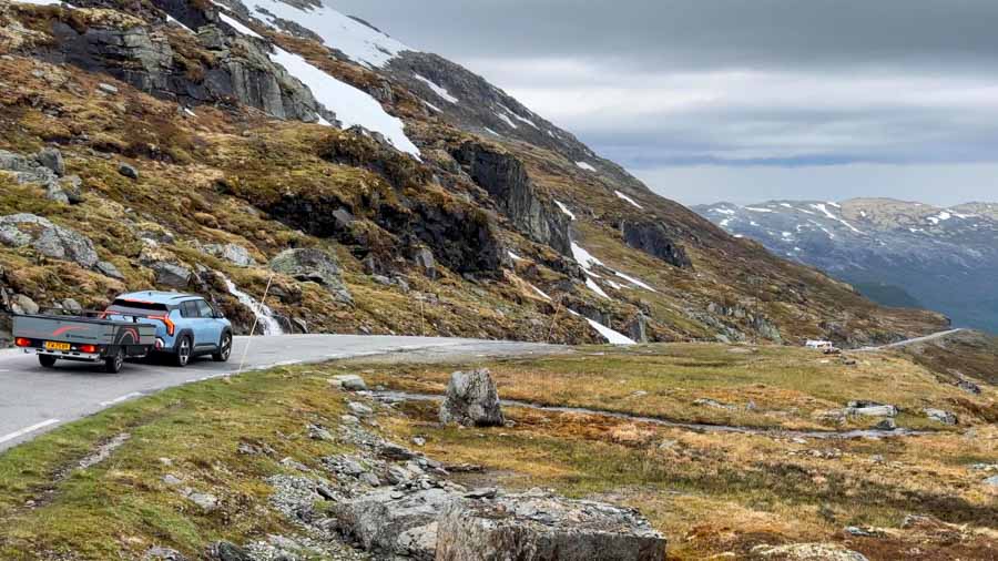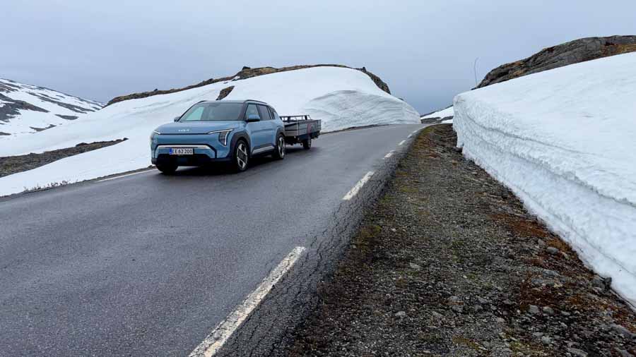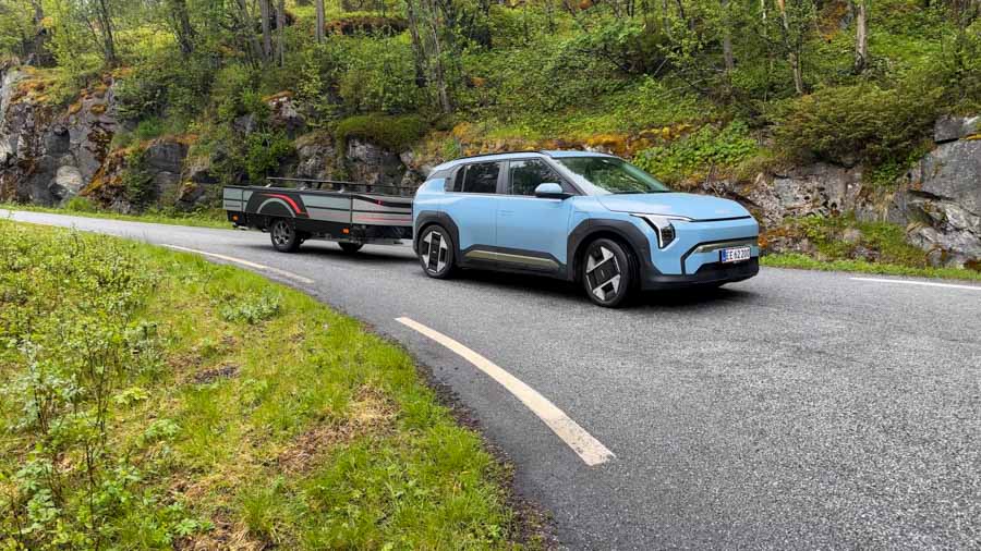 Vi har været på tur i Norges bjerge med en Combi-Camp og en Kia EV3 Upgrade Long Range som trækker.