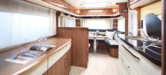 Køkkenerne er funktionelle med store skuffer i stedet for skabe. Og gode funktionelle overskabe igen holdt i en praktisk og flot højglans. Køkkenerne har 3 gasblus og både koldt og varmt vand. Hvis man tilkøber Winner pakken får man også valgmuligheden imellem gasbageovn og mikroovn.