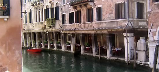 Vi køber os til en dyr tur i gondol, så vidt jeg husker ca. 1000 kr. Til gengæld var vi 6 med, foruden gondolieren. Smalle stræder, med råb om hjørnet for at advare modsejlende, vi rammer et hushjørne hist og her, men tager det ikke så tungt.