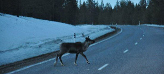 Vi har dog ikke prøvet at køre en elg eller et rensdyr ned, men med de hastigheder de kører med heroppe, kunne jeg godt forestille mig at sådan et dyr ville smadre en bil, hvis man ramte et.