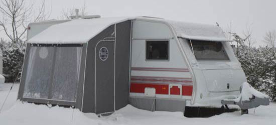 Teltdøren er placeret rigtig godt, man kan nemlig åbne døren til campingvognen, og stadig komme ind og ud af teltet – godt tænkt.