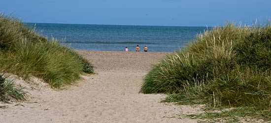 Den store og brede strand kan bruges både til leg og afslapning