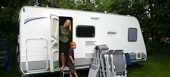 Ud over vores startproblemer var vores første indtryk meget positivt. Vi var så heldige at campingvognen, vi skulle bo i, var helt ny og det så ud som om at ingen tidligere havde boet i den. Vi blev også meget overrasket over at finde ud af hvor rummelig den var. I bagenden af vognen var der køjesenge til børnene. Vores to drenge aftalte med det samme, at de skulle skiftes til at ligge øverst. Her havde de hver deres eget lille rum hvor de kunne lege, læse, hygge og være dem selv, samtidig med at de stadig var tæt på os og hinanden.