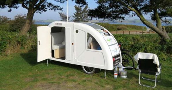 Mads Johansen har udviklet denne campingvogn, helt fra bunden, og det er måske gået op for de fleste, at vi ikke snakker om en stor campingvogn til at spænde efter bilen. Men derimod en super kompakt cykelcamper. Så nu er det slut med at slæbe telt og liggeunderlag med på cykelturen, og velkommen til cykelferie med komfort som i de større campingvogne.